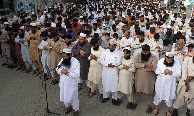 کچھ روز قبل لاہور میں حافظ سعید کی سربراہی میں ملا عمر کی غائبانہ نماز جنازہ پڑھائی گئی جس میں تقریباً ایک ہزار افراد نے شرکت کی —اے ایف پی۔