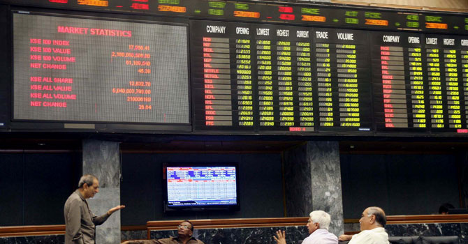 کراچی: کراچی اسٹاک ایکسچینج میں ہفتے کے آخری روز مندی کا رجحان رہا اور کے ایس ای 100 انڈیکس 75.86 پوائنٹس کی کمی سے 17664.83 پوائنٹس پر بند ہوا۔