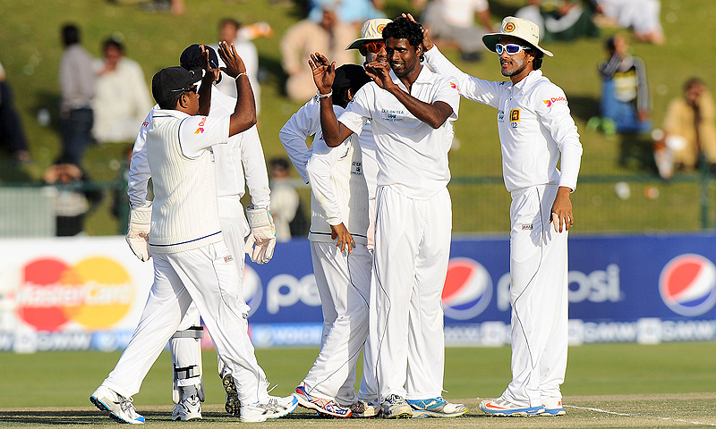 شیخ زید سٹیڈیم میں جاری میچ کے دوسرے روز پاکستان نے دن کا آغاز گزشتہ روز کے اسکور 46 رنز ایک وکٹ کے نقصان پر کیا تاہم ابتدائی اووروں میں سری لنکن باؤلروں کی نپی تلی باؤلنگ کے باعث پاکستان نے دو وکٹیں جلد گنوادیں۔
