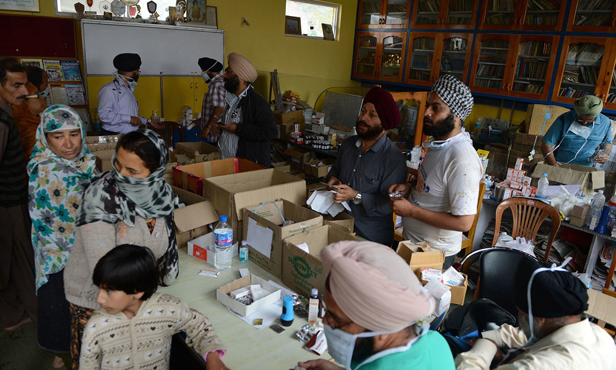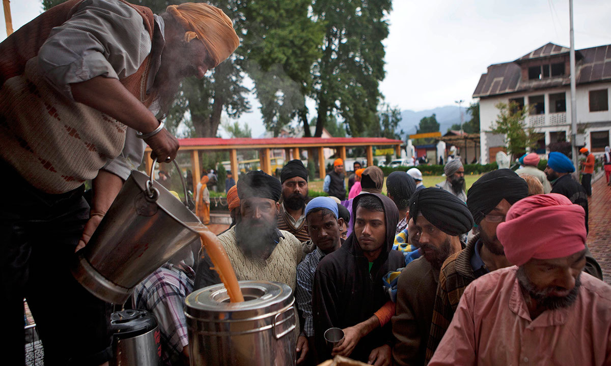 سری نگر میں قائم ایک سکھ گردوارے میں ہندوستان کے زیرِ انتظام کشمیر میں سیلاب متاثرہ افراد کے لیے کھانا تیار کیا جا رہا ہے جبکہ امرتسر میں گولڈن ٹیمپل میں بھی لاکھوں افراد کا کھانا تیار کیا جاتا ہے جو فضائی ذریعے سے روزانہ سیلاب زدگان میں تقسیم کے لیے سری نگر پہنچایا جاتا ہے۔
