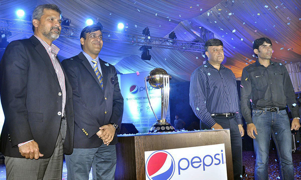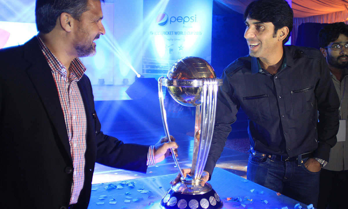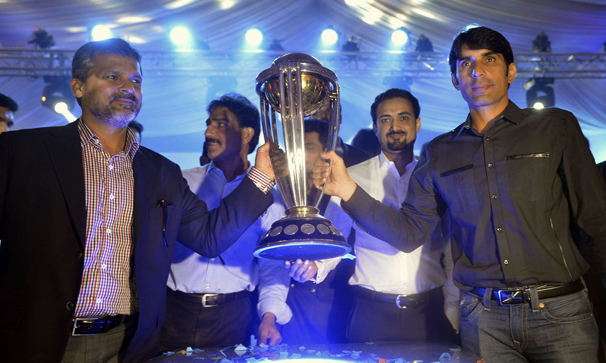 لاہور کے منٹو پارک گراؤنڈ میں آئی سی سی ورلڈ کپ ٹرافی 2015 کی تقریب رونمائی ہوئی، ورلڈ کپ ٹرافی گلوبل ٹور کے تحت پاکستان پہنچی اور اس موقع پر کپتان مصباح الحق نے عزم ظاہر کیا کہ وہ اس ٹرافی کو اپنے ملک اور دہشت گردی سے متاثرہ افراد کے لیے جیتنے کی بھرپور کوشش کریں گے۔