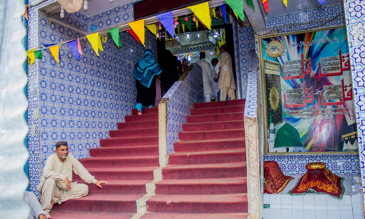 پھولوں کی دکانوں اور چائے کے پرشور اسٹالز کو نیچے چھوڑ کر زائرین پُرجوش انداز میں سیڑھیوں کی طویل قطار چڑھ کر اس جگہ پہنچتے ہیں جہاں عبداللہ شاہ غازی کا مزار ہے۔