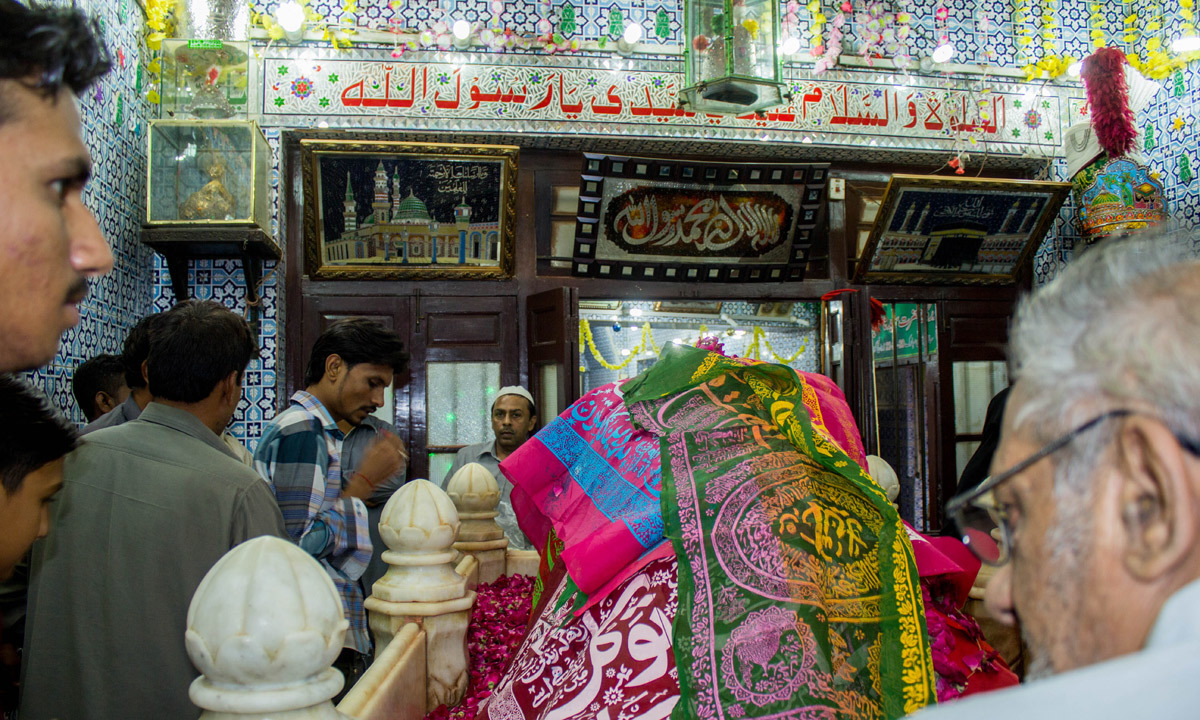زائرین موج در موج مزار میں داخل ہو رہے تھے اور سندھ کی صوبائی ڈیزاسٹر مینجمنٹ اتھارٹی (پی ڈی ایم اے) کے فوری انخلاء اور دفعہ 144 کے نفاذ کی دھجیاں بکھیر رہے تھے۔