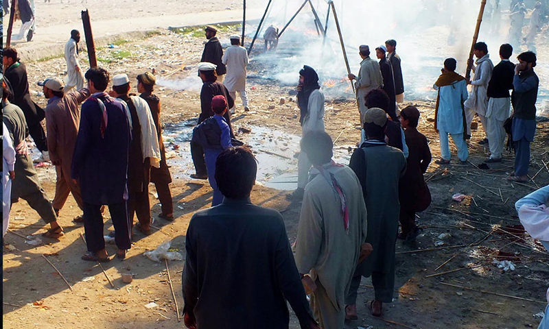 دہشت گردی کے خلاف جنگ کے ستائے اور گھروں سے دور آئی ڈی پیز نے پہلے اسپورٹس کمپلیکس پر پتھراؤ کیا اور پھرعارضی پناہ گاہوں جلا دیا۔