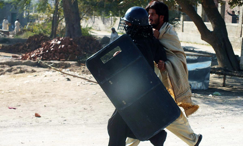 مشتعل افراد نے ہنگامہ آرائی کے دوران کئی عارضی طور پر بنائے گئے خیموں کو جلا دیا جبکہ پولیس کی لاٹھی چارج سے 10افراد زخمی بھی ہوئے۔