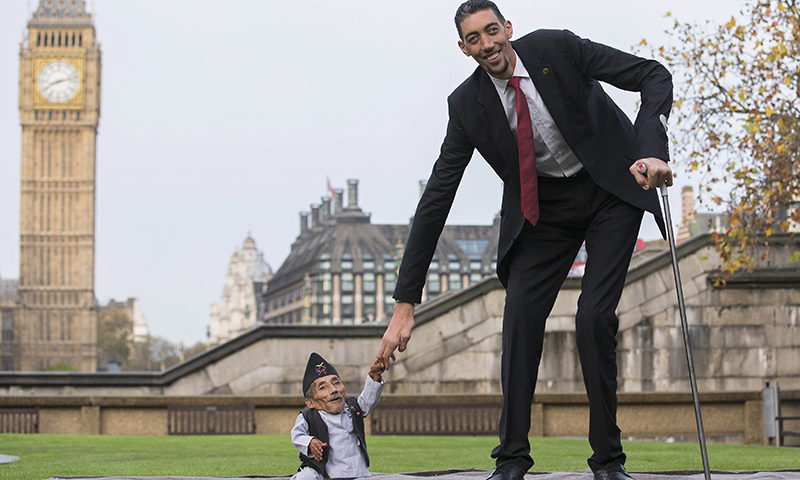 دنیا کے سب سے لمبے اور سب سے چھوٹے قد کے انسانوں کی ملاقات