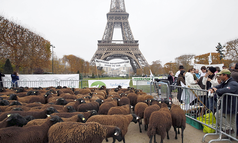جمعرات کو پیرس کے تاریخی ٹاور کے اردگرد سیکڑوں بھیڑیں جگالی کرتی جبکہ ان کے مالکان بھیڑیوں کے بڑھتے ہوئے حملوں کے خلاف حکومت سے موثر اقدامات کی مانگ کرتے نظر آئے۔