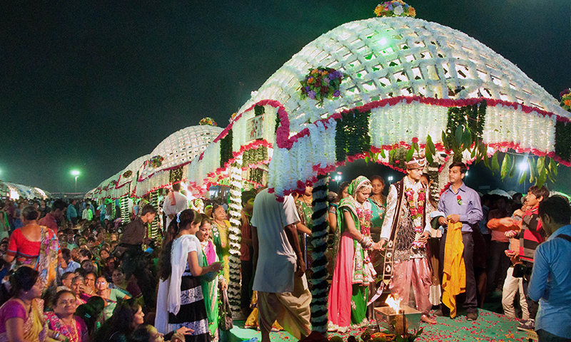 احمد آباد: ہندوستان میں ایک ہیروں کے تاجر نے 111 یتیم لڑکیوں کی شادی کراتے ہوئے ہر دلہن کو لاکھوں مالیت کے تحفے دیے ہیں۔