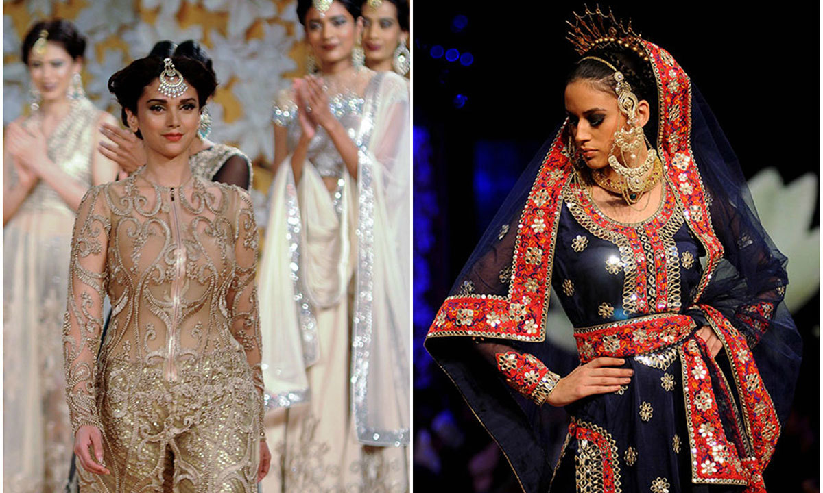 یہ ہے بلینڈرز پرائڈ فیشن ٹور 2014 جس میں ڈیزائنر نے زرق برق عروسی ملبوسات کو پیش کیا۔