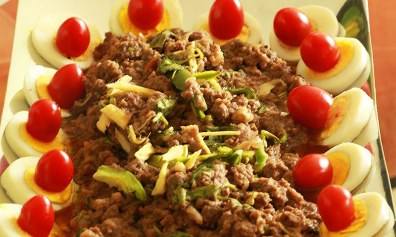 اسی طرح موسم سرما کا کوئی بھی زبردست ناشتہ دم کے قیمہ کے بغیر مکمل نہیں ہوسکتا اور میری تحقیق مجھے اس پکوان کی تاریخ کے ایک دلچسپ موڑ پر لے گئی۔ موجودہ دور کا دم کا قیمہ آئینِ اکبری میں دی جانے والی ترکیب کا ملغوبہ ہے۔ میری والدہ ہمیشہ اس پکوان کو اس وقت ملغوبے کا نام دیتی تھیں جب وہ مختلف چیزوں کے امتزاج سے ناقابل شناخت ہوجاتا تھا۔
