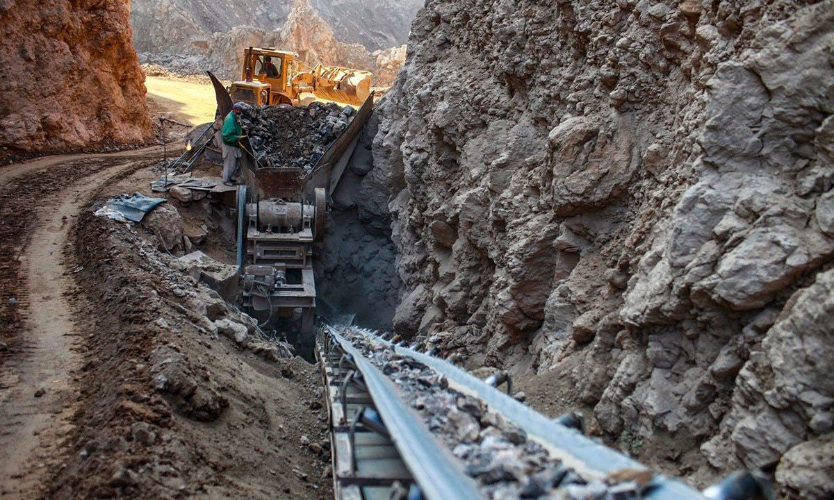 | پہاڑوں سے حاصل ہونے والے خام مال کومشین کے ذریعے چھوٹے ٹکروں میں توڑا جارہا ہے تاکہ مزید باریک کرنے کیلئے دیگر مشینوں کو بھیجا جاسکے — فوٹو: رائٹرز |
