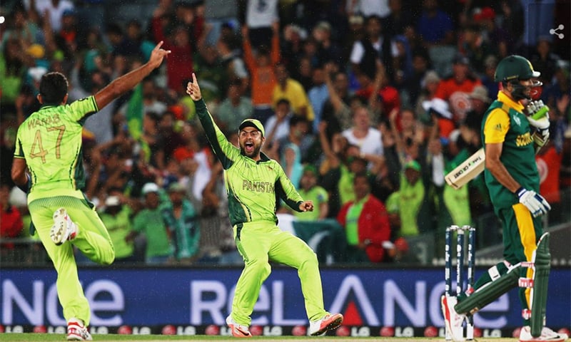 | سہیل خان نے اے بی ڈی ویلیئرز کی اہم وکٹ لے کر پاکستان کی جیت پر مہر ثبت کردی۔ تصویر بشکریہ آئی سی سی |
