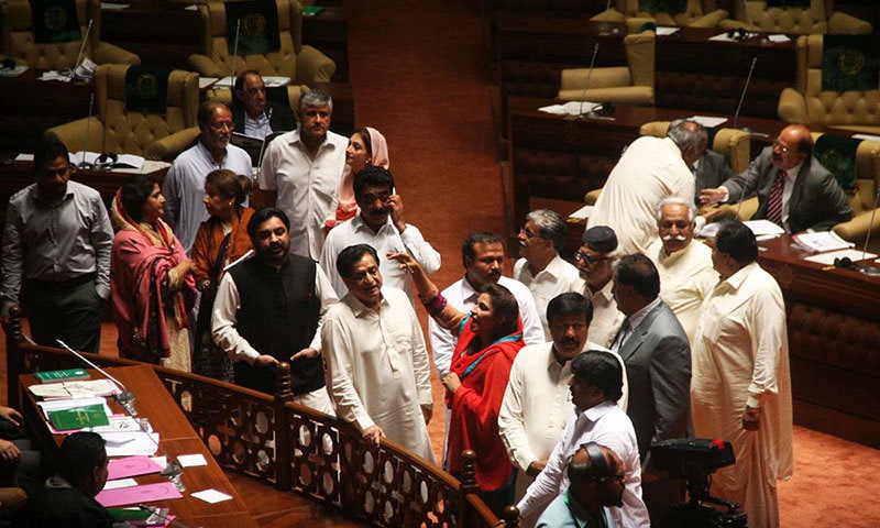| سندھ اسمبلی میں صوبے کا نئے مالی سال کا بجٹ پیش کیا گیا جبکہ اس دوران ایوان میں اکثر نشستیں خالی تھیں۔ فوٹو آن لائن |