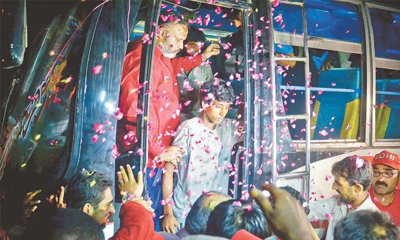 ٹھٹھہ کے قریب حاجی یوسف کاٹھیار گوٹھ کے رہائشی غلام حسین کے والد، محمد جمن کو اپنی رہائی کی کچھ زیادہ خوشی نہیں تھی، جنھوں نے بوجھل دل کے ساتھ بس سے نیچے قدم رکھا اور استقبال کے لیے موجود ہجوم میں سے ایک شناسا چہرے کو دیکھتے ہی اُس سے لپٹ کر سسکنے لگے۔