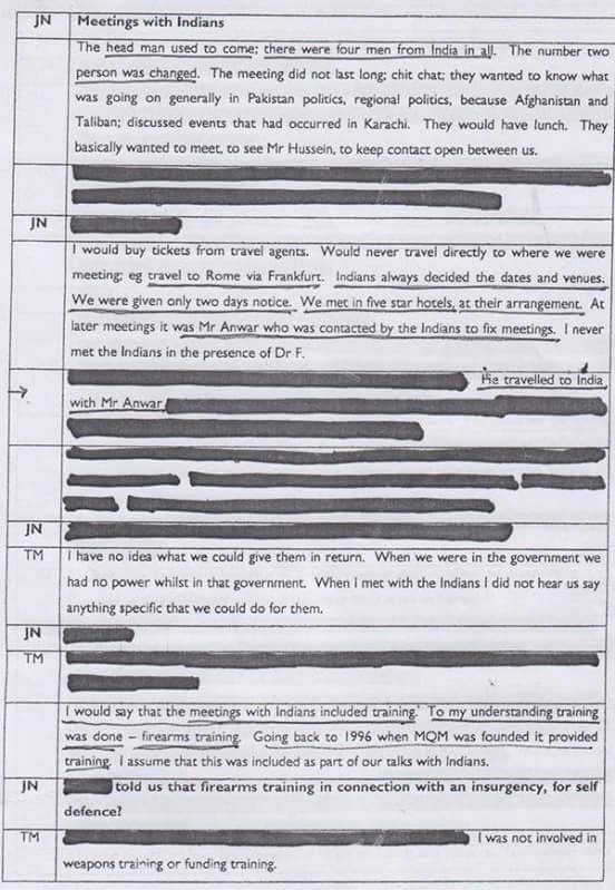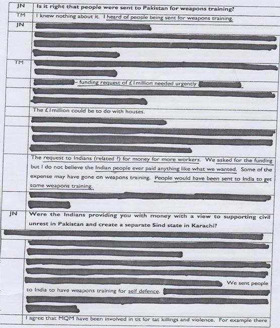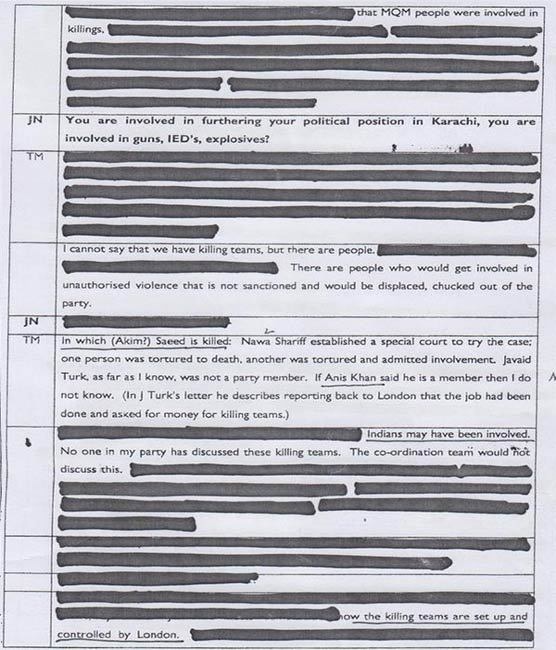 یہ دستاویزات متحدہ قومی موومنٹ کے ایک سینئر رہنما کے مبینہ طور پر لندن پولیس کو دیئے گئے بیان پر مشتمل ہے۔