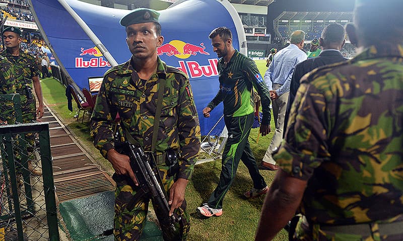 اتوار کو یہاں پریما داسا میدان کے اندرایک پاکستانی فیلڈر کے قریب پتھر گرنے کے بعد کھلاڑی کچھ دیر کیلئے ڈریسنگ روم چلے گئے اور کھیل بیس منٹ تک معطل رہا۔