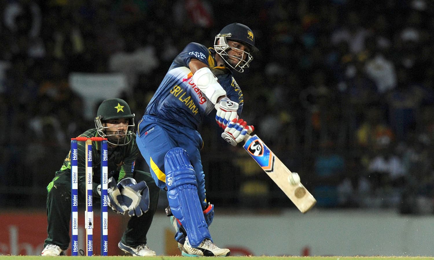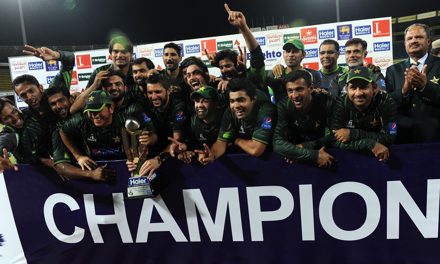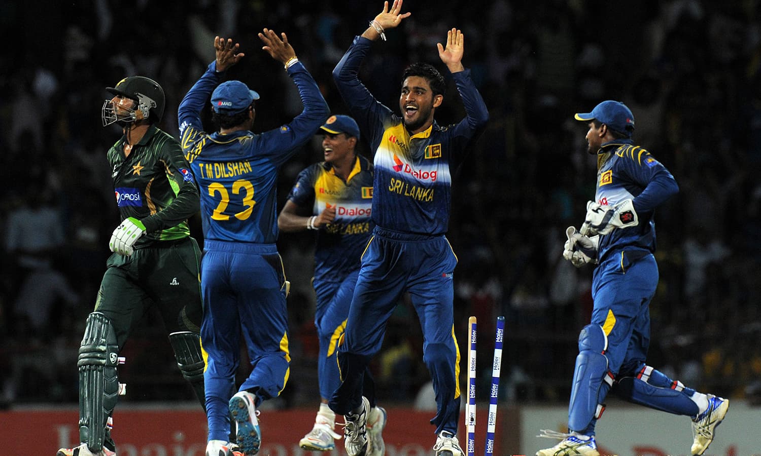 کولمبو: پاکستان نے شاہد آفریدی اور انور علی کی دھواں دار بلے بازی کی بدولت سری لنکا کو ایک وکٹ سے ہرا کر دو میچوں کی ٹی ٹوئنی سیریز اپنے نام کر لی۔
