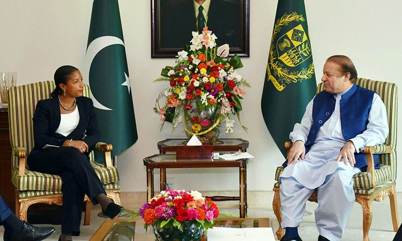 اس سے قبل وزیر اعظم نواز شریف سے امریکا کی قومی سلامتی کی مشیر سوزن رائس نے ملاقات کی۔
