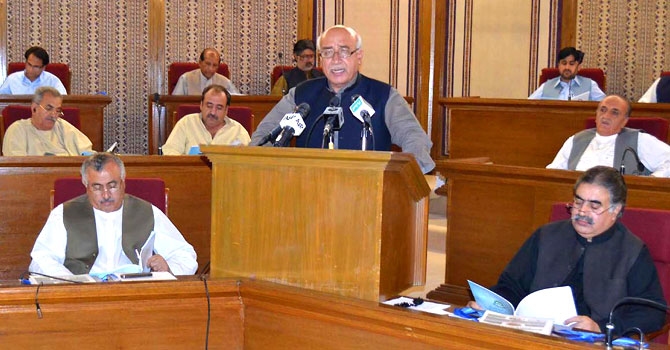 وزیر اعلیٰ عبدالمالک بلوچ بلوچستان اسمبلی میں آئندہ مالی سال کا بجت پیش کر رہے ہیں۔ فوٹو آئی این پی