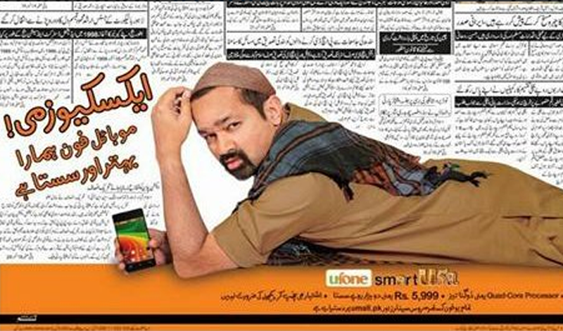 حال ہی میں 'جاز' موبائل کی جانب سے مشہور اردو اخبارات کے فرنٹ پیج پر لگایا گیا نئے موبائل فون کا اشتہار کس کو یاد نہیں ہوگا؟ جس میں بولی وڈ اداکارہ نرگس فخری سرخ رنگ کا لباس پہنے موبائل کی تشہیر کرتی نظر آئیں، یہ الگ بات کہ موبائل پر کسی کی نظر ہی نہیں گئی تھی۔