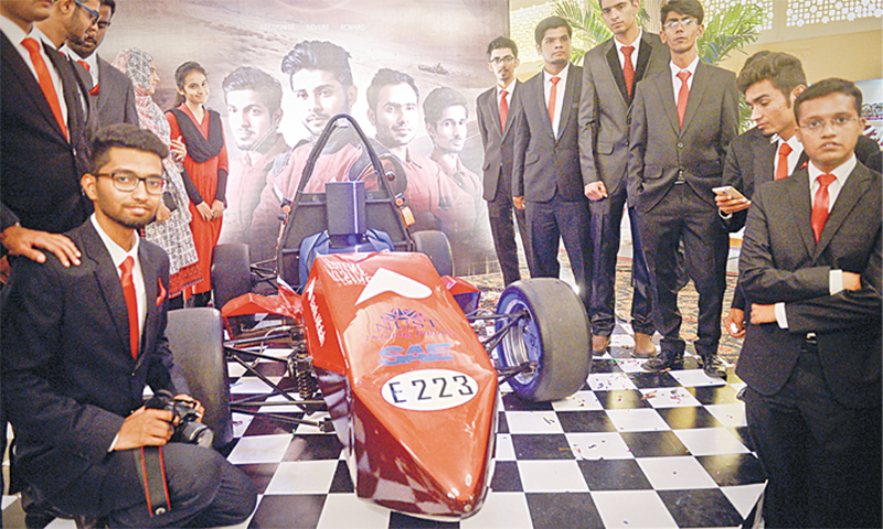اس گاڑی کی نقاب کشائی گزشتہ روز ایک مقامی ہوٹل میں کی گئی جہاں نسٹ کے جدت اور کمرشالائزیشن کے ڈائریکٹر سلمان ابصار نے ڈان سے خصوصی گفتگو میں کہا کہ ایک ایسے ملک میں جہاں فارمولا ون ریسنگ کا کوئی ڈھانچہ نہیں اور خصوصاً الیکٹرک گاڑیاں، سہولتیں اور درکار تجربہ بھی موجود نہیں، تو وہاں پاکستان کی پہلی فارمولا الیکٹرک ریسنگ گاڑی بنانے کا سفران کے لیے آسان نہیں تھا۔