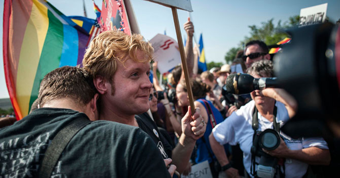 واشنگٹن: ہم جنسوں کے حقوق کے علمبرداروں کے حق میں ایک غیر معمولی کامیابی کا اعلان کرتے ہوئے امریکی سپریم کورٹ نے بدہ کے روز ہم جنس مرد اور عورت جوڑوں کو وفاقی سہولیات حاصل کرنے کا اہل قرار دیدیا، اس فیصلے سے ریاست کیلیفورنیا میں ہم جنس شادیوں کی راہ بھی ہموار ہو گئی ہے۔