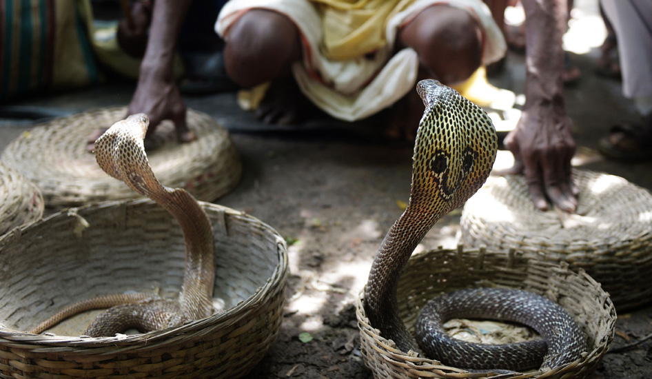 ہندوستان ميں قبائلی سانپوں کے زہر سے علاج  کرنے کا  سو سالہ جشن منا رہے ہیں، سائنس اور ٹیکنالوجی کے اس دور میں جہاں لوگ جدید طرز کے علاج کو ترجیح دیتے ہیں وہیں ہندوستانی ریاست جھاڑکھنڈ کے شہر جمشید پور میں لوگ اب تک  ہندوستانی قبائیلیوں سے سانپوں کے زہر کی مدد سے علاج کرانے میں دلچسپی رکھتے ہیں۔ تصاویر: اے ایف پی