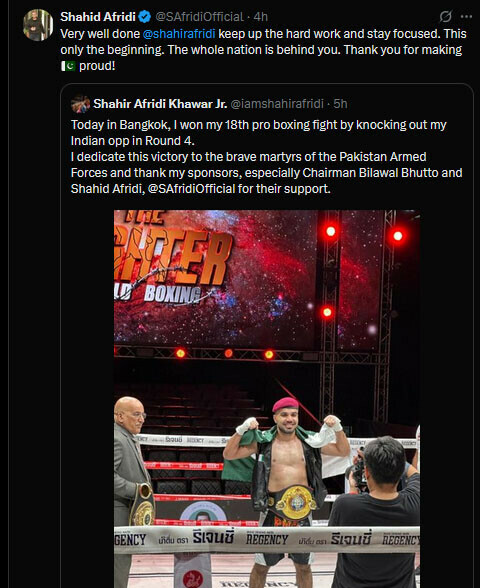ڈان نیوز کے مطابق تھائی لینڈ میں ہونے والی رینکنگ فائٹ میں پاکستانی باکسر شہیر آفریدی نے بھارتی حریف کا بھرکس نکال ڈالا۔