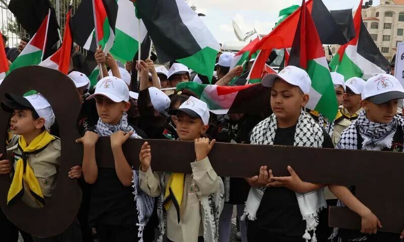قطری نشریاتی ادارے ’الجزیرہ‘ کی رپورٹ کے مطابق فلسطینیوں نے مقبوضہ مغربی کنارے کے شہر رام اللہ میں نکبہ، یا ’تباہی‘ کی یاد میں احتجاجی مارچ کیا، 1948 میں اسرائیل کے قیام کے دوران لاکھوں فلسطینیوں کو بے دخل کردیا گیا تھا۔