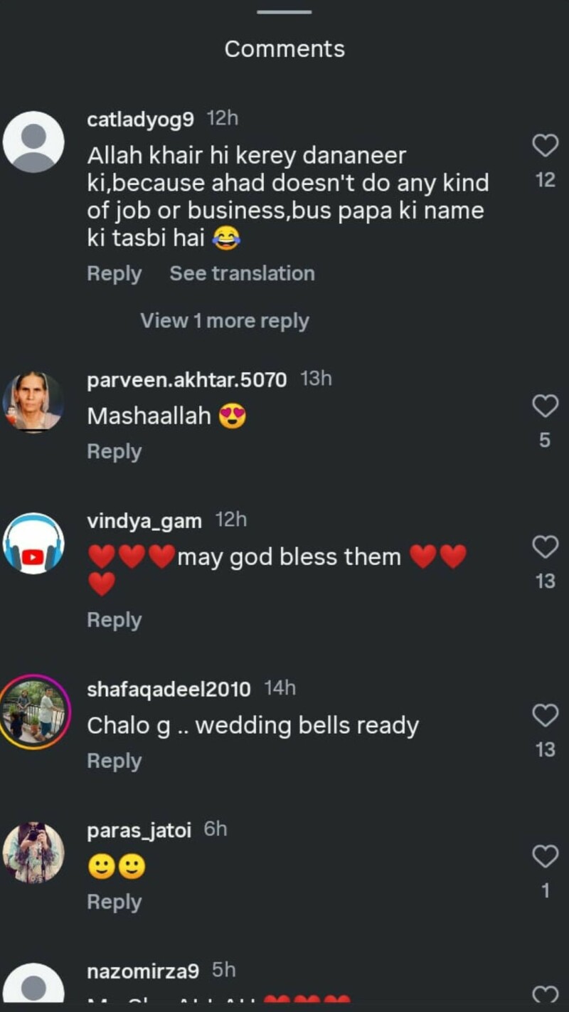 ایک صارف نے دنانیر مبین کی خیریت کی دعا مانگی، جب کہ کچھ صارفین نے دونوں کے لیے نیک تمناؤں کا اظہار کیا۔