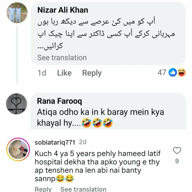 بعض صارفین نے عتیقہ اوڈھو کو مخاطب کرتے ہوئے تبصرہ کیا کہ ’فیصل رحمٰن کے بارے میں ان کا کیا خیال ہے؟‘