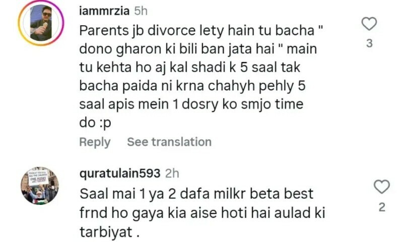 صارفین کے مطابق والدین کی طلاق کے بعد سب سے زیادہ بچے متاثر ہوتے ہیں، اسی لیے والدین کو چاہیے کہ شادی کے کم از کم پانچ سال تک بچے پیدا نہ کریں بلکہ پہلے ایک دوسرے کو اچھی طرح سے سمجھیں۔