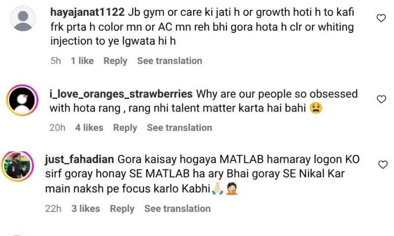 کچھ صارفین نے سوال کیا کہ اداکار کی رنگت اتنی صاف کیسے ہو گئی، جب کہ دیگر نے لکھا کہ اصل اہمیت اداکاری کی صلاحیتوں کو دی جانی چاہیے، رنگت کوئی معنی نہیں رکھتی۔