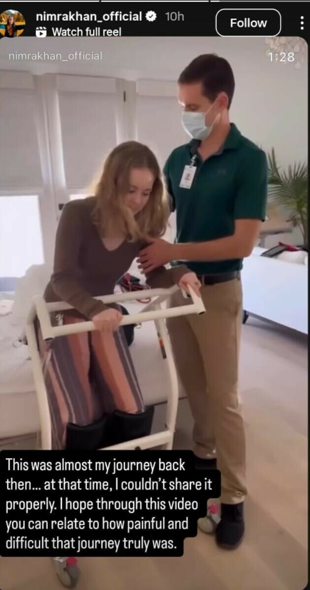 اداکارہ نے انسٹاگرام اسٹوری میں ایک ویڈیو بھی شیئر کی، جس میں ایک لڑکی کو دوبارہ سے چلنے پھرنے کے لیے محنت کرتے ہوئے دیکھا جا سکتا ہے۔