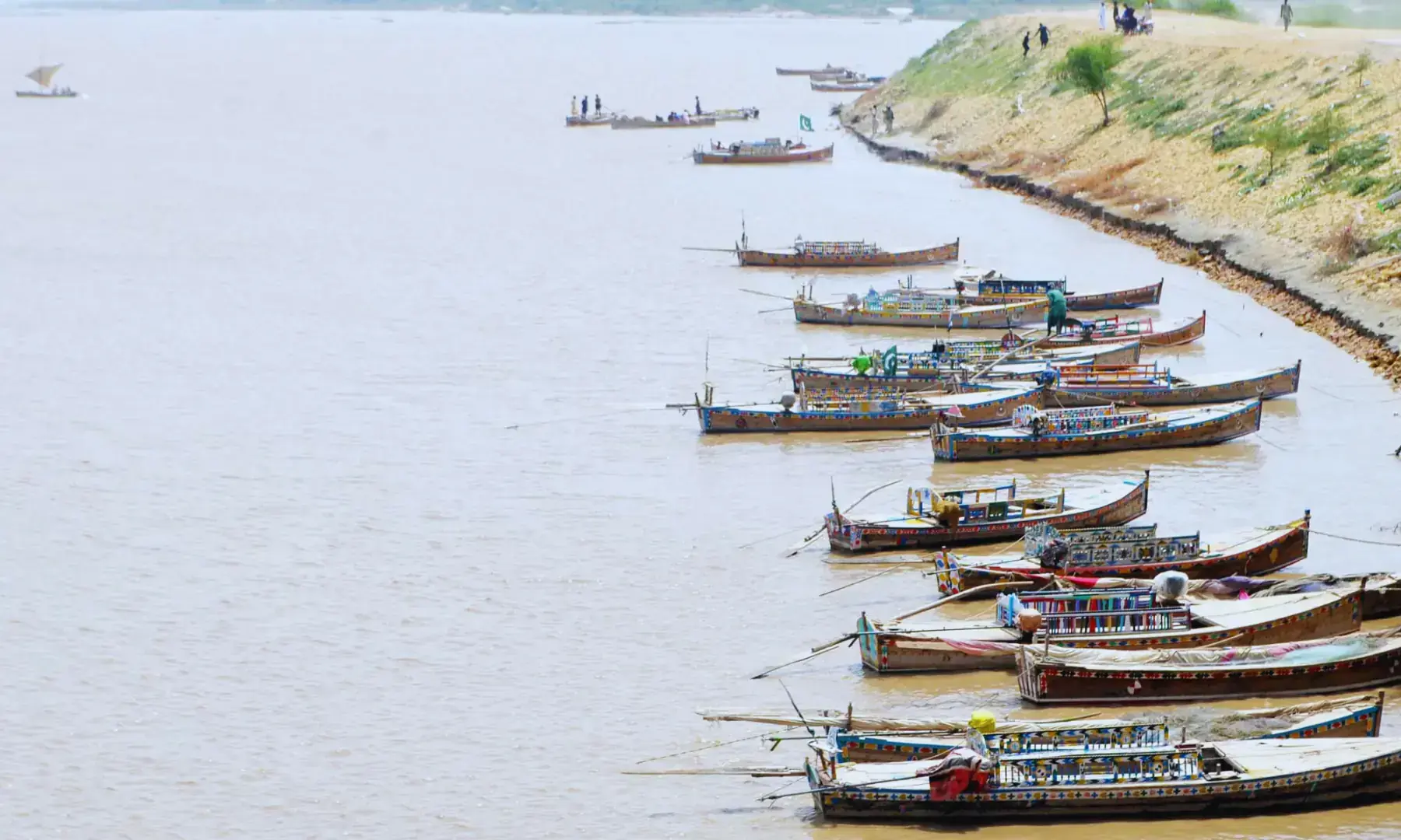 ہیڈر: کشتیاں دریائے سندھ کے کنارے کھڑی ہیں، کوٹری بیراج کے نیچے دریا کے کنارے کے اس حصے میں ابھی پانی داخل نہیں ہوا تھا— اس تحریر میں شامل تمام تصاویر عمیر راجپوت نے عکس بند کی ہیں۔