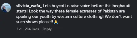 کچھ صارفین نے شو کو بے غیرتی قرار دیتے ہوئے بائیکاٹ مہم شروع کرنے کا مطالبہ کیا، جب کہ کئی نے پیمرا سے اس پر پابندی لگانے کی بھی اپیل کی۔