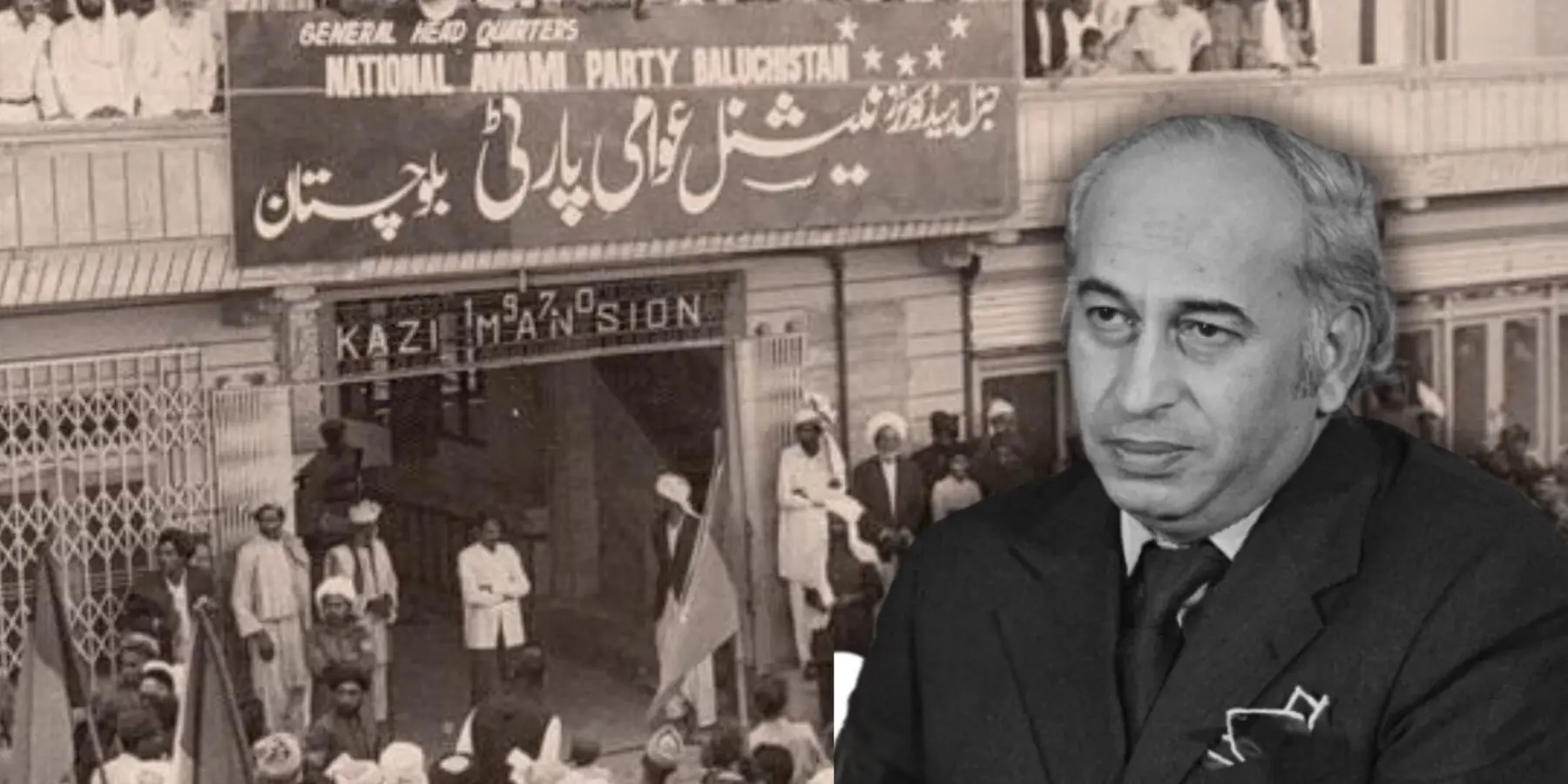 بلوچستان میں نیشنل عوامی پارٹی (نیپ) کی حکومت کو ختم کرنے پر محض بھٹو کو ہی مورد الزام نہیں ٹھہرایا جاسکتا۔ نیپ کے قائد خان عبدالولی خان نے ذوالفقار بھٹو کا اقتدار کبھی تسلیم نہیں کیا تھا جس کے نتیجے میں پشاور کنوینشن میں نیپ نے بھٹو حکومت کو چھوڑنے کا فیصلہ کیا۔