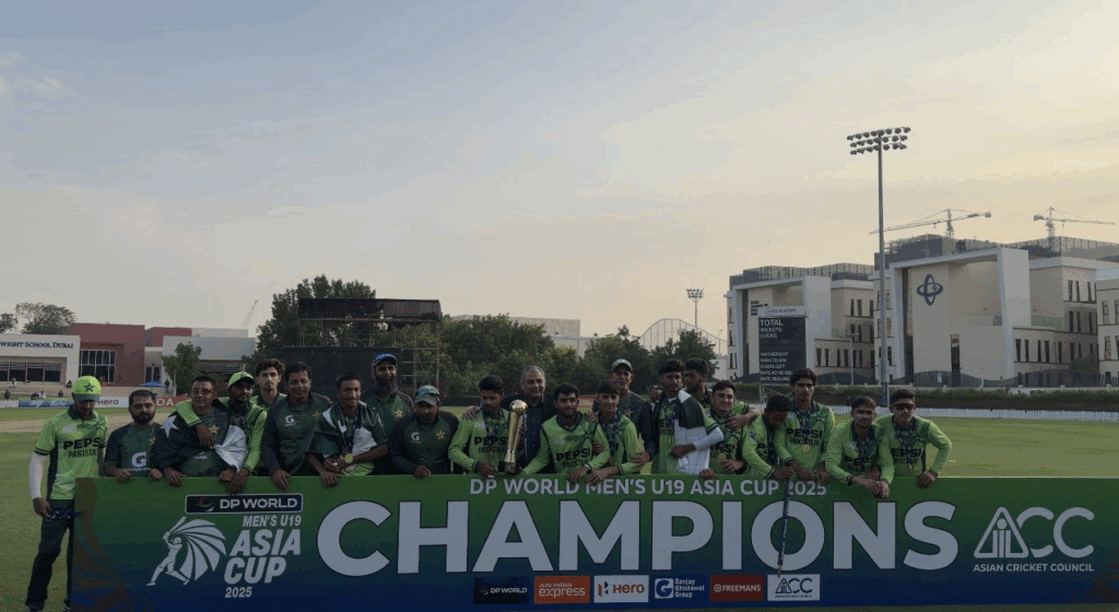 واضح رہے کہ پاکستان نے گزشتہ روز آئی سی سی اکیڈمی گراؤنڈ دبئی میں کھیلے گئے انڈر 19 ایشیا کپ کے فائنل میں شاندار کارکردگی کا مظاہرہ کرتے ہوئے روایتی حریف بھارت کو 191 رنز کے بھاری مارجن سے شکست دے کر ٹائٹل اپنے نام کیا تھا۔