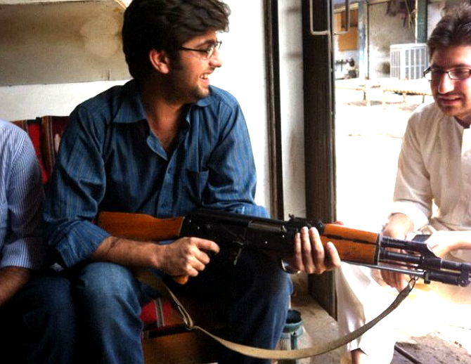 اپنی گاڑی سے ابھی ہم کچھ ہی قدم چلے تھے کہ ہم دوستوں نے دو نوجوانوں کو دیکھ کر ایک دوسرے کی جانب سوالیہ نظروں سے دیکھا۔ یہ دو نوجوان مخصوص انداز کی پگڑی سر پر باندھے ہوئے تھے، کالے رنگ کی شلوار قمیض پہن رکھی تھی، دونوں ہی کی شلوار ٹخنوں سے اوپر تھی، دونوں نوجوانوں نے ایک ہاتھ میں کلاشنکوف پکڑ رکھی تھی، اور دوسرے ہاتھ میں موبائل فون۔ معلوم ہوتا تھا کہ اسی موبائیل فون کے متعلق گفتگو میں مشغول ہیں۔