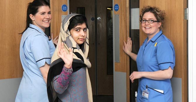 ملالئے کوئن الزبتھ اسپتال میں۔ اے ایف پی فوٹو۔