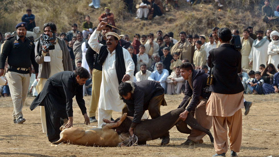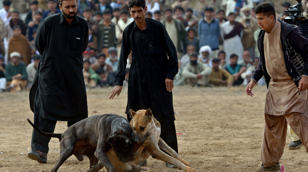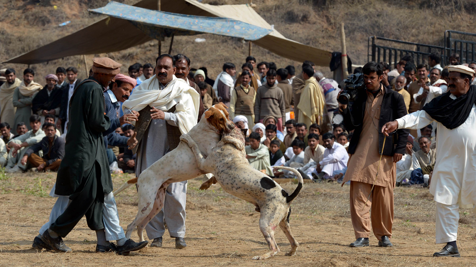 پاکستان کے دارالحکومت اسلام آباد سے لگ بھگ سو کلو میٹر کے فاصلے پر واقع چکوال شہر میں لوگوں کا ہجوم کتوں کی لڑائی دیکھ رہا ہے۔ پاکستان کے دیہی علاقوں میں جانوروں کو لڑوانا ایک دلچسپ کھیل سمجھا جاتا ہے۔