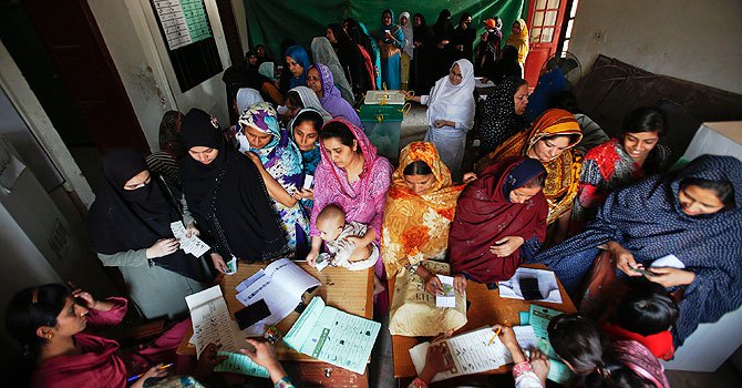 اندرون لاہور کے کچھ حصوں میں خواتین پولنگ اسٹیشنز پر اپنا ووٹ کاسٹ کررہی ہیں ۔- رائٹرز فوٹو