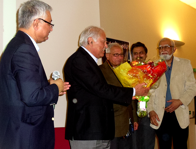 I was also there and enjoyed the Ek Shaam,Raza Ali Abidi Ke Nam.Before the start of the programme I had a brief chat with Abidi Saheb in a separate room and a photograph with him. Shukryia Abidi Saheb for sparing some time for me. I took some pictures of the event too.